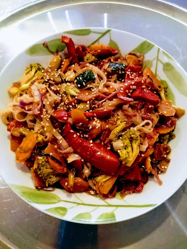 La comida estaba buena pero pedi espaguetis y tenian demasiada soja.
