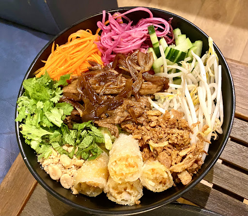 He vuelto dos veces, ¡el banh mi es increíble! ¡Delicioso bo bun! El servicio es excelente y muy acogedor, sin duda volveré :) Buenas opciones veganas