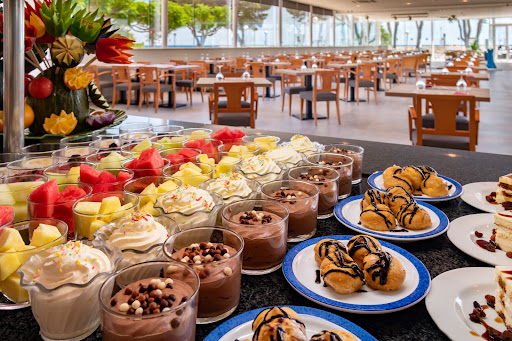 Hotel muy acogedor, pequeño, bien ubicado frente al puerto deportivo. Personal muy amable, atento y servicial. El buffet de lo mejor, todos los días, tanto al mediodía como a la noche, nuevas comidas, variadas, frescas bien cocinadas y en su punto. Reposición de bandejas de comida siempre en su momento justo. Los cocineros muy buenos, atentos a las necesidades de cada uno. Los camareros también muy buenos, atentos y siempre con una sonrisa, en especial María Dolores. Experiencia digna de repetir.