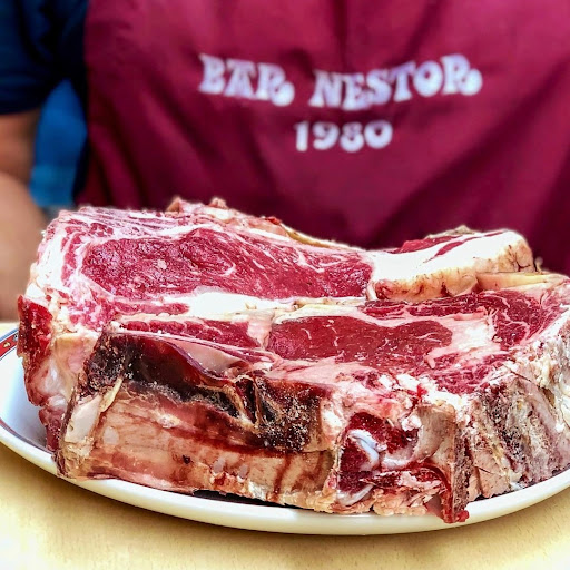 Cuando llegas a tu hora asignada para adorar en este templo a la carne de res, primero te recibe una luz dorada que se derrama sobre la calle, un aroma celestial de carne asada y el ruido y el zumbido de un restaurante ocupado. El personal de camareros está ocupado entregando platos chispeantes de carne, tomates jugosos y pimientos padrón brillantes, pero lo reciben con una sonrisa y un gesto de asentimiento: usted es uno de los pocos afortunados. No hay menú. O dices que sí o que no. ¿Pero quién diría que no? La única opción que tienes es cuál de los dos filetes que te ofrecen es el adecuado para ti. El filete es una Txuleta, el corte de carne de res para la región. Es un hueso - en filete de solomillo de proporciones épicas - con facilidad suficiente para dos.