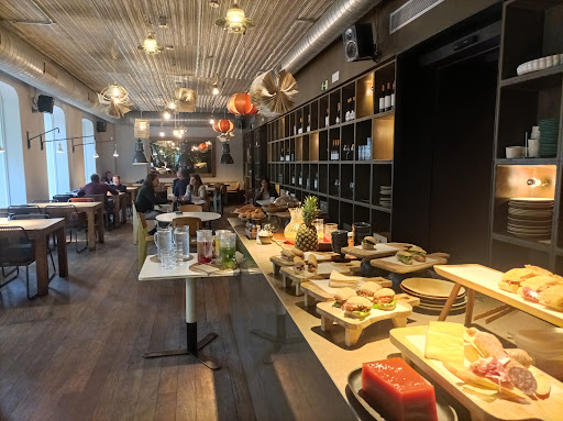 Un local amplio, acogedor y con decoración moderna. La luz justa por la noche. Camareros muy amables y explicando en detalle la carta. La comida es excelente. Tienen una sección en la carta para compartir. Una buena idea para 4 personas es pedir 3 raciones y una pizza que están riquísimas. La carta de cocteles es también de locura, para empezar o para terminar la comida.
