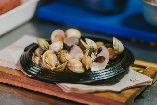 El bacalao está salado y las almejas son una pasada. Nunca había visto almejas tan pequeñas. Eran del tamaño de una uña...