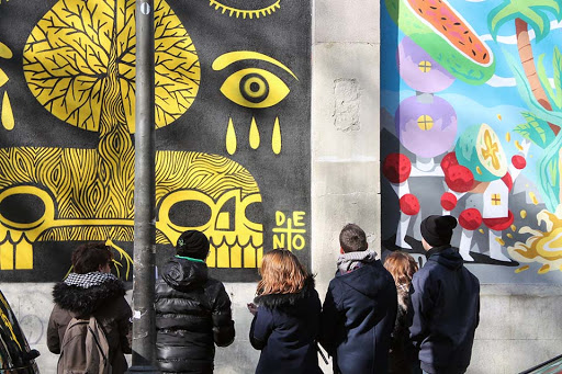 Contratad este tour guiado con Yago. Sabe de arte, de graffiteras, del barrio… No es solo arte urbano, es cultura e historia de Lavapies. 100% recomendable. Murales y graffitis chulísimos. Merece.