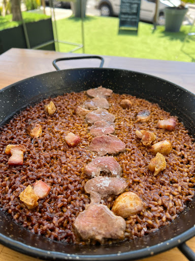 El arroz está un poco grasiento, pero no está mal. Las patatas bravas están buenísimas. El set de embutidos es interesante.