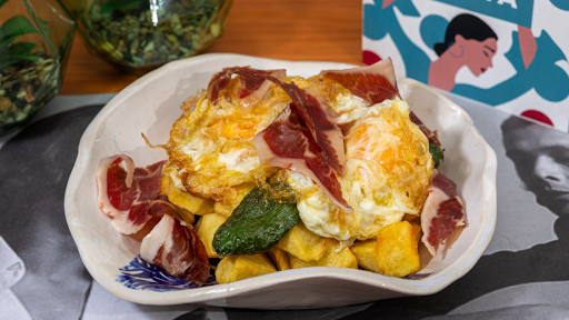 Comida de gran calidad y deliciosa que nunca esperas encontrar, todo en uno, servida en un espacio muy acogedor con un personal maravilloso y amable, y músicos y bailaores de flamenco con mucho talento. ¡Imprescindible!
