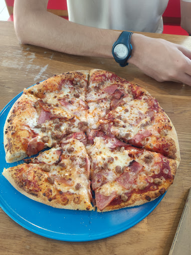 Bueno no está mal pero si nos fijamos bien los trabajadores del dominoss, no llevan guantes al hacer las pizzas y eso te crea una sensación de un poco de asco, mucho gritos los findes de semana, y si vienen niños no les dicen nada, no les importa. La comida está bien no son las mejores que e probado pero está bien