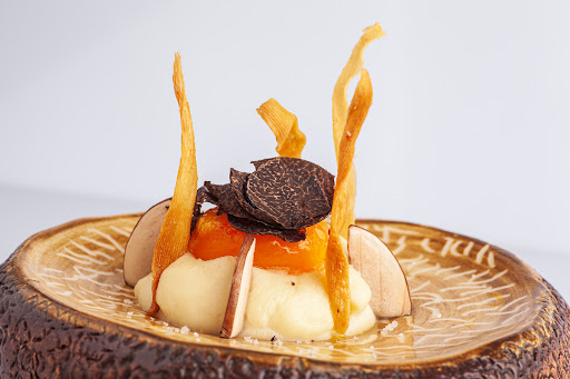 En cuanto a la presentación, es evidente que aquí todo está pensado con un criterio estético y conceptual. Los platos dialogan con la vajilla de una manera poco habitual: cada pieza de cerámica parece haber sido diseñada expresamente para el bocado que se sirve en ella. Esa coherencia entre gastronomía y artesanía tradicional es uno de los aspectos más valiosos del restaurante, y habla del respeto por la identidad y la cultura local que impregna toda la propuesta.