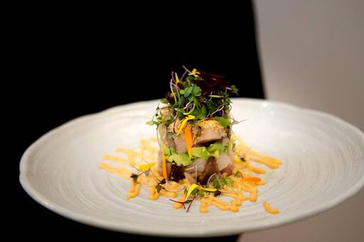 La comida es excepcional. El sushi es único y creativo, con combinaciones que sorprenden de la mejor manera, mientras que el sashimi y el nigiri clásicos muestran una frescura y precisión excepcionales. Los platos de pescado son un punto culminante, complementados con una cuidada carta de vinos que marida a la perfección con el menú: una grata sorpresa para un restaurante de sushi. Hay opciones vegetarianas disponibles, pero más limitadas en comparación con la rica variedad de creaciones de mariscos.