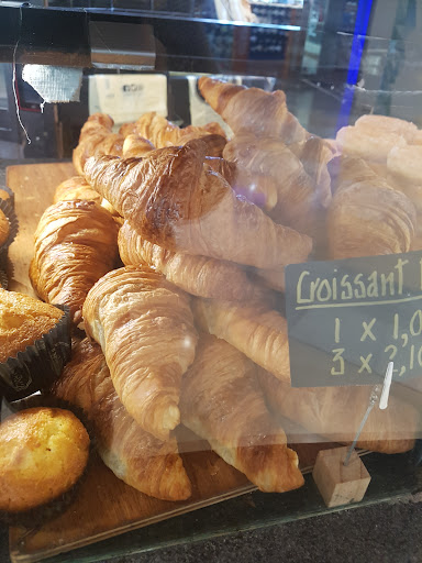 Esta colocado en mitad de un pasillo, no es un local. Mesas muy estrechas y es autoservicio. El colacao cuesta 2,60 euros. Tienen bocadillos, bollería y pasteles. No hay comida sin gluten.