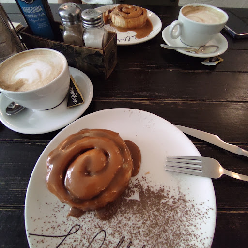 Hiper recomendado. La comida buenisima, pedí un cinnamon roll con crema de pistacho, frutos rojos y manzana caramelizada y estaba para morirse. Recién hecho, calentito y con un sabor increíble. Para beber los lattes están muy bien. que tienen El sitio además es super bonito y acogedor, muy grande y con muchas mesas así que de normal encuentras sitio. La camarera super amable y me ayudo a elegir lo mejor y me dio sus recomendaciones. Y además tenian enchufe para poder cargar el movil. Relación calidad precio super bien, me esperaba un precio más caro para lo que era y super contento.