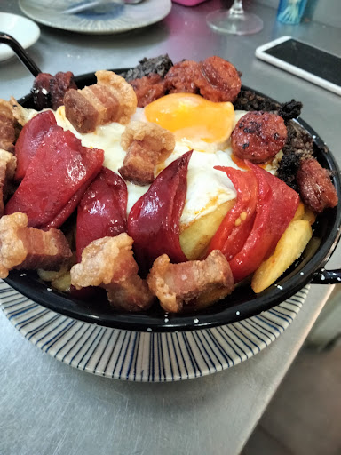El único pero, en la terraza en pleno Diciembre, nos tostamos😂😂 La camarera un amor y la comida muy rica, especialmente su calidad precio. Los torpedos de langostino de levantar la txapela, los calamares riquísimos y los platos combinados y las sartenes muy ricas.