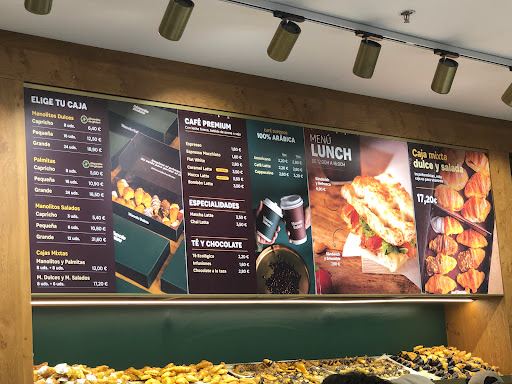Un servicio estupendo. Encargué la caja a través de su página web y, nada más llegar al establecimiento del Centro Comercial Lagoh (Sevilla), la empleada Raquel me atendió con mucha amabilidad y me despachó la caja en tan sólo un momento. Además, gracias a los puntos canjeables en Manolo Bakes, también pude disfrutar de una pequeña caja de palmitas, la cual también fue despachada con mucha celeridad y buen hacer. Ha sido un verdadero gusto que Raquel me haya atendido. ¡Volveré a ir encantado! 10/10