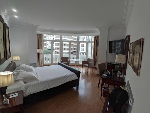 Este hotel parecía más un hotel de tres estrellas que de cuatro. La ubicación es ideal, cerca de los lugares clave de Valencia, pero todo el lugar parecía anticuado. Al llegar, habíamos reservado una habitación con terraza; al levantarnos para verla, nos pareció aún más anticuada de lo que parecía el vestíbulo y sin espacio suficiente ni para una maleta. Pudimos cambiarnos a una habitación más grande, pero perdimos la terraza y pagamos un suplemento, y aun así era bastante estrecha. Las habitaciones tampoco están bien insonorizadas; se oía todo lo que hacían las personas de al lado y de arriba, lo que dificultaba un poco el sueño.