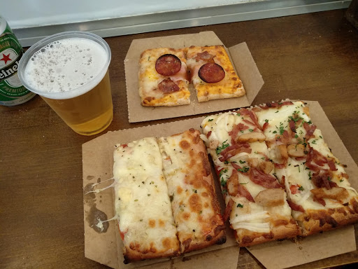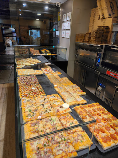Pizzas de tradición italiana, elaboradas con productos de Italia, 16 diferentes sabores de pizza hechas de masa fina y gruesa, 7 sabores de pizza vegetariana (vegetarian pizza). Pizza por ración o "al taglio". Desayunos y crepes de Nutella. Abierto 24 horas 365 días del año.