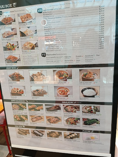 Fuimos a comer pedimos el wok de pollo, el de ternera y unos fideos de arroz a los que añadimos pollo, de todo esto lo que más nos gustó fueron los fideos quizá algo caros para la cantidad, los otros dos wok estaban algo insípidos a pesar de llevar una salsa, eso sí son rápidos y lo hacen al momento.