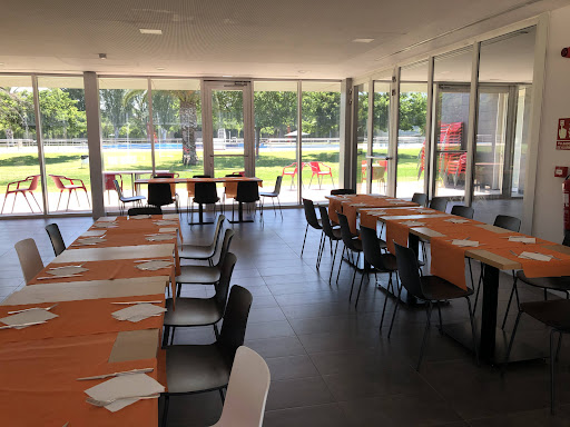 Amplio, acogedor en unas instalaciones deportivas y la comida muy buena.