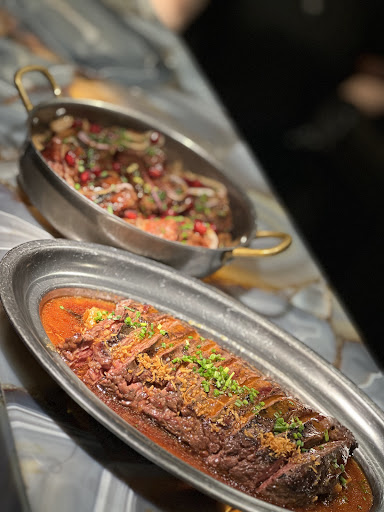 El camarero nos recomendó lo que pedir, y todo fue un acierto. Pedí tamada de cóctel, berenjenas rellenas, croquetas de carrillera, y carne a la brasa (no recuerdo si era la entraña), todo estuvo de 10.