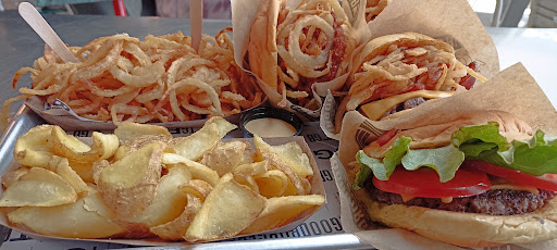 Hamburguesas sabrosas y variedad: La carne 100% vacuno tiene sabor, y hay bastante oferta de tipos de hamburguesas, hot dogs, sides, etc. La 50 Shades llama la atención por su combinación de carne de vacuno y cerdo, bacon, aros de cebolla, salsa BBQ.