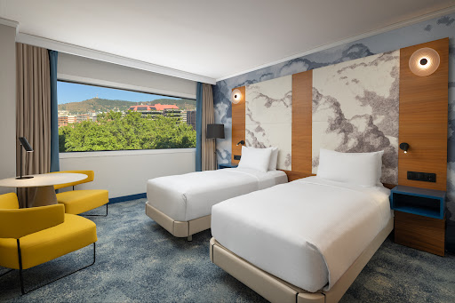 Nos alojamos aquí y también en el Hyatt Tower durante un crucero en Barcelona. Aunque no es tan lujoso, preferimos este hotel por sus servicios y su excelente ubicación para turistas. Nuestra habitación estaba limpia, era muy cómoda y pudimos registrarnos un poco antes. La parada del autobús turístico está muy cerca y compramos los billetes en la recepción del hotel. Hay varios centros comerciales y tiendas a un corto paseo. Hay un McDonald's al lado, pero no abre por las mañanas. El desayuno buffet del Hilton es una excelente opción y mucho más barato que el del Hyatt, sobre todo si lo reservas la noche anterior. Normalmente nos alojamos en hoteles económicos, pero volvería a gastar un poco más en alojarme aquí.