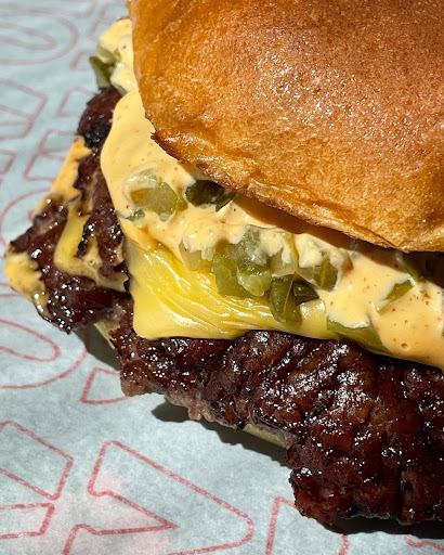 Las hamburguesas aquí son realmente deliciosas, todas ellas, y volvería siempre. Pedí una hamburguesa con queso sencilla, bastante grande, con dos hamburguesas aplastadas, como vi que tenían todas las demás. Estaba jugosa y deliciosa, al igual que las papas fritas. Me gustó mucho que estuvieran crujientes. La espera no es larga, pero fui un lunes, así que no sé cómo será la hora punta un fin de semana. El lugar es agradable y espacioso.