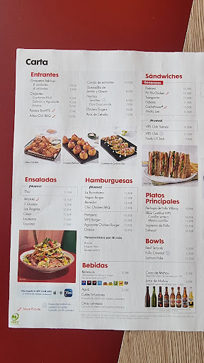 Variados entrantes como nuestras Patatas Rustic ideales para compartir, sabrosas ensaladas como la Louisiana o la César, sándwiches como nuestro popular VIPS Club, sabrosas hamburguesas como la Pampera o la nueva VIPS Burger, tiernas carnes como el Entrecot de novillo argentino, deliciosos postres, batidos y nuestras famosas Tortitas con nata.