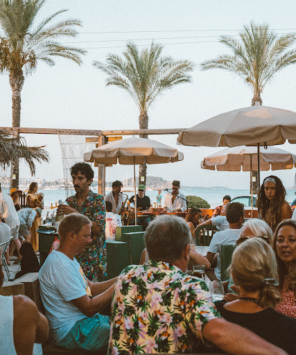 Tuvimos música en vivo, seguidos por brillantes DJs que tocaron un hermoso y frío baile balear para igualar la salida de la luna llena sobre la bahía.