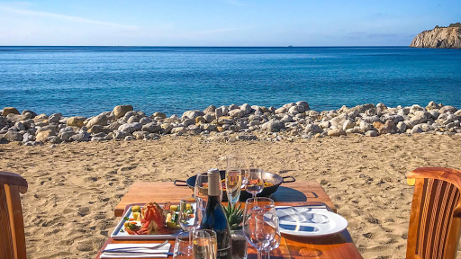 Restaurante de playa de moda en Cala Jondal desde hace muchos años. Sobre todo fuera de temporada, sigue capturando la magia de Ibiza y ofrece un ambiente alegre con platos deliciosos, principalmente mariscos.