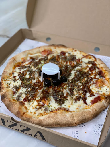 Comimos la ensalada de Burrata y cherrys y una pizza Malacara…. La masa de la pizza riquísima! Nos encanto!