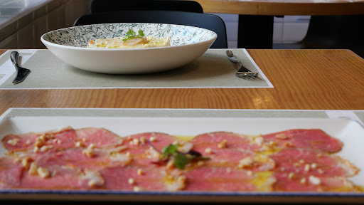 Pedimos alcachofas, risotto, cachopo y tacos de bacalao. El servicio muy atento y agradable. Los platos estaban sabrosos y bien presentados.